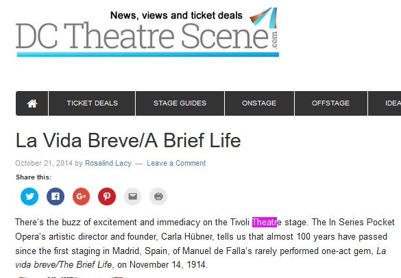 There’s the buzz of excitement and immediacy on the Tivoli Theatre stage. The In Series Pocket Opera’s artistic director and founder, Carla Hübner, tells us that almost 100 years have passed since the first staging in Madrid, Spain, of Manuel de Falla’s rarely performed one-act gem, La vida breve/The Brief Life, on November 14, 1914.